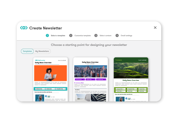 Teilen Sie relevante Reportings in einer benutzerdefinierten E-Mail-Vorlage mit der gesamten Organisation oder den wichtigsten Stakeholdern. Präsentieren Sie ausgewählte Artikel oder Social Media-Inhalte auf Ihrer Website und im Intranet.