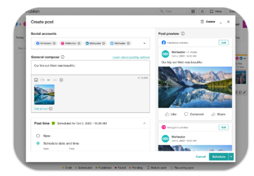 Draft, schedule, and publish content to maintain a consistent brand voice on your channels.