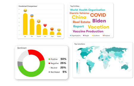 Suivez en temps réel la perception de votre marque dans les médias en ligne et sur les réseaux sociaux grâce à une analyse intelligente assistée par l'IA.
