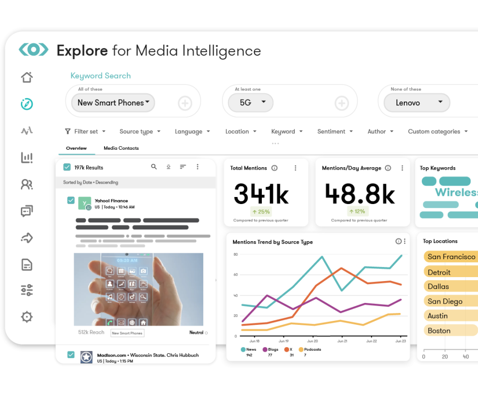 Since 2001, we have invested in proprietary technology to capture content from more than 270,000 global news sources, social media platforms, forums, blogs, print publications, broadcasts and podcasts. We bring in over 500 million pieces of new content every day and keep adding news sources on a daily basis. You can also always access your search results and get real-time analyses through our industry-leading mobile app, available on iOS and Android.